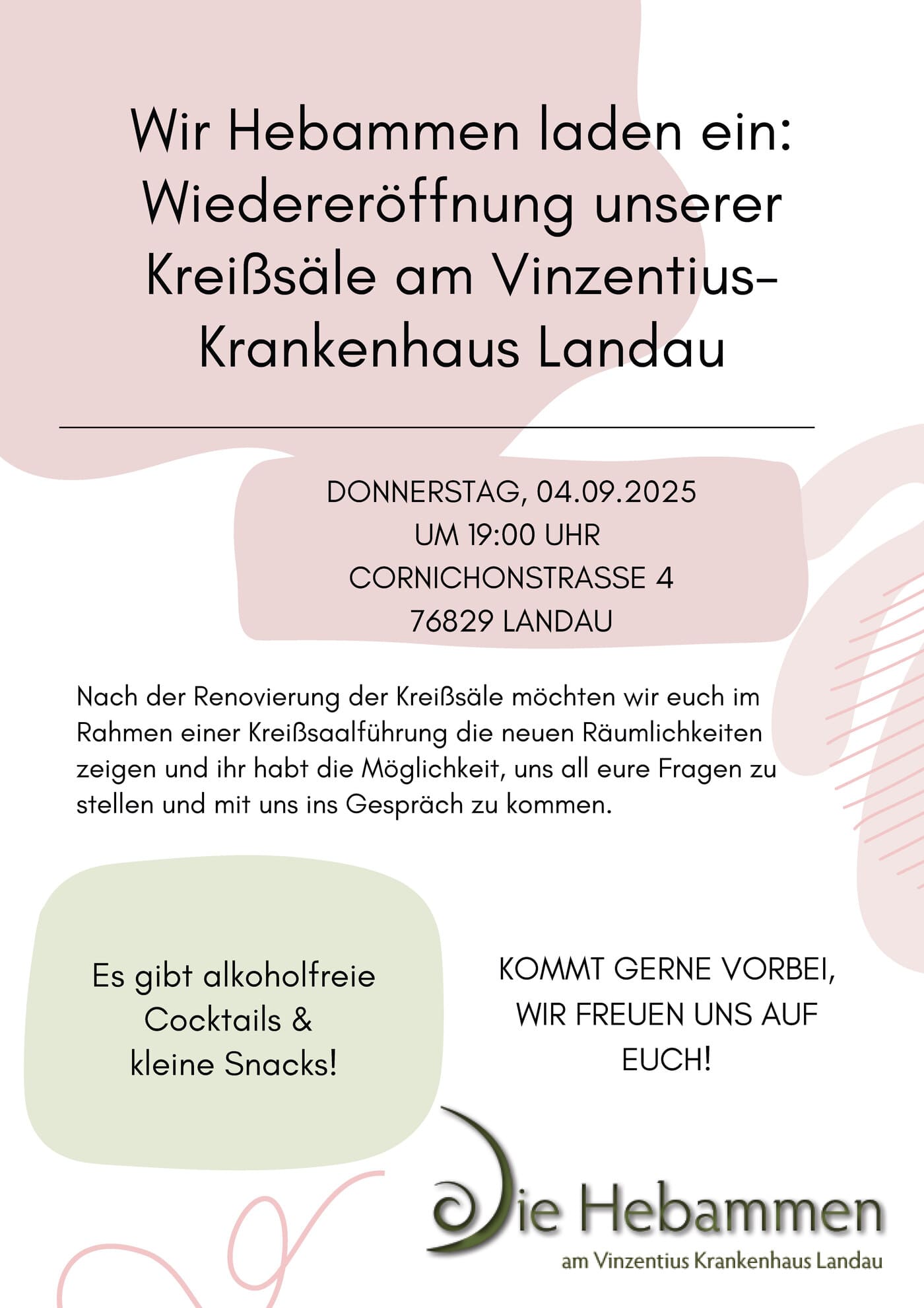 Wir Hebammen laden ein: Wiedereröffnung unserer Kreißsäle am Vinzentius- Krankenhaus Landau